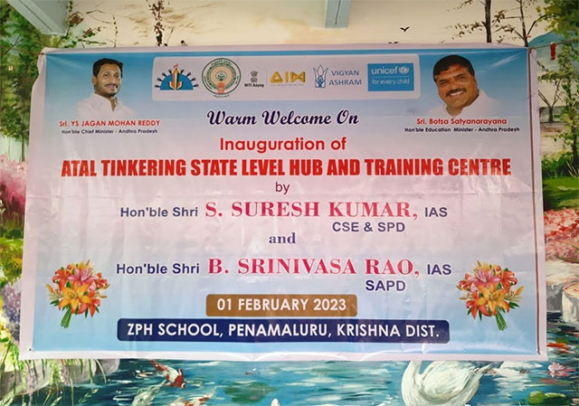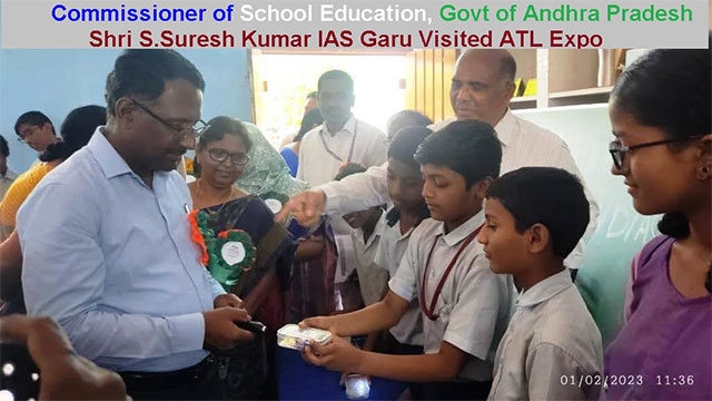 Commissioner of School Education & SPD Govt of AP Shri S.Suresh Kumar IAS Visited ATL Expo on 1st February 2023 at ZPHS Penamaluru