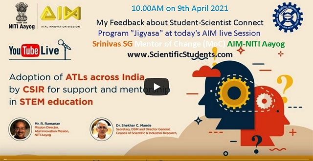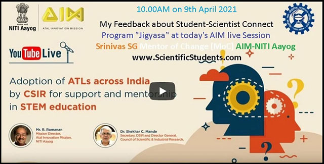 Srinivas SG MoC Video Feedback About Jigyasa AIM CSIR Initiative