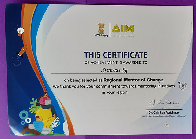 Me as a "Mentor of Change" at Atal Innovation Mission(AIM) - NITI Aayog - Govt of India Assigned School ASHRAM PUBLIC SCHOOL KAKINADA on 10th July 2019