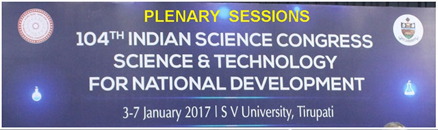 FEW PLENARY SESSIONS AT 104th INDIAN SCIENCE CONGRESS, TIRUPATI