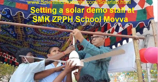 Setting up a solar demo stall at SMK ZPPH School Movva
