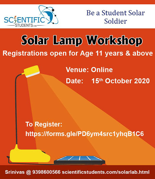 - "Student Solar Soldier" workshop is designed to sensitize young minds and provide hands on training to make their first solar device "Solar Study Lamp (SSL)".