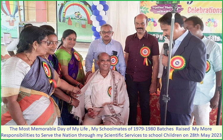With the goals of increasing practical science skills and nurturing scientific thought process, he has travelled across Andhra Pradesh, Karnataka, Tamilnadu, Maharastra, Gujarat,Telangana, Pondechery and Delhi, Bangalore, Chennai, Hyderabad,Mumbai,Pune to visit as many science fairs as possible. On You Tube, he shared more than 1500 videos that he captured in these visits. To pass on his knowledge, observations and to motivate students, he visited more than 500 schools to talk to nearly 3 lakhs students. He has supported 1000s of students over phone, email, and facebook over the last few years whenever they had any doubt while building a working model for a science fair. |