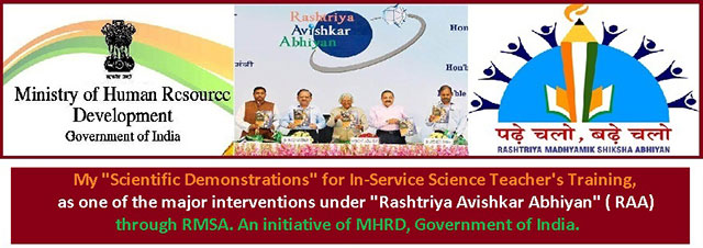 In pursuance of the focus on connecting school based knowledge to life outside the school and making learning of Science Mathematics a joyful and meaningful activity, to bring focus on innovation and use of technology, the Ministry of Human Resource Development has set up the Rashtriya Avishkar Abhiyan (RAA)- a convergent framework that aims at nurturing a spirit of inquiry and creativity, love for Science and Mathematics and effective use of technology amongst children and encourage those who show an inclination and talent for these subjects to be encouraged and supported to heights of academic excellence and research. For more details...