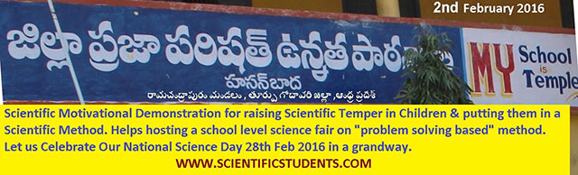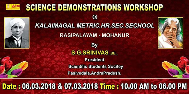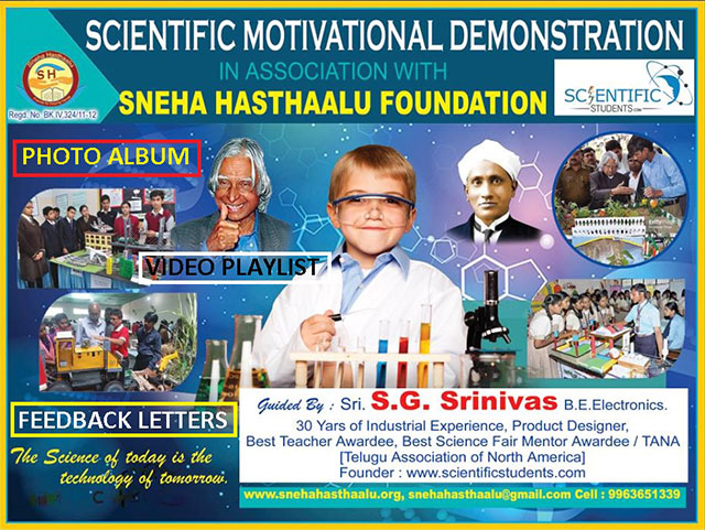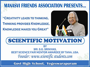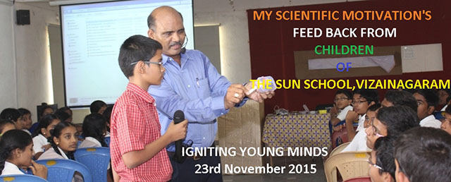 With all the above questions in mind and as a social responsibility I have taken up the Scientific motivations as one of the prime activity of mine through "Young Scientist Program" activities. for more...