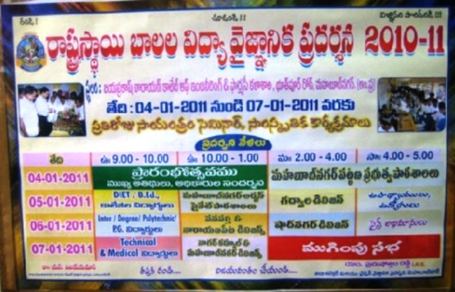 DISTRICT LEVEL SCIENCE EXHIBITION KAKINADA 29th NOV 2011