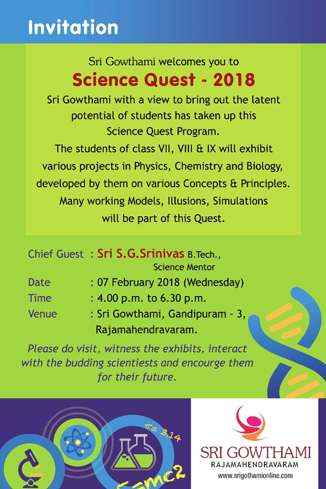 Science Quest 2018 Sri Gowthami Smart School Rajahmundry on 7th Feb 2018