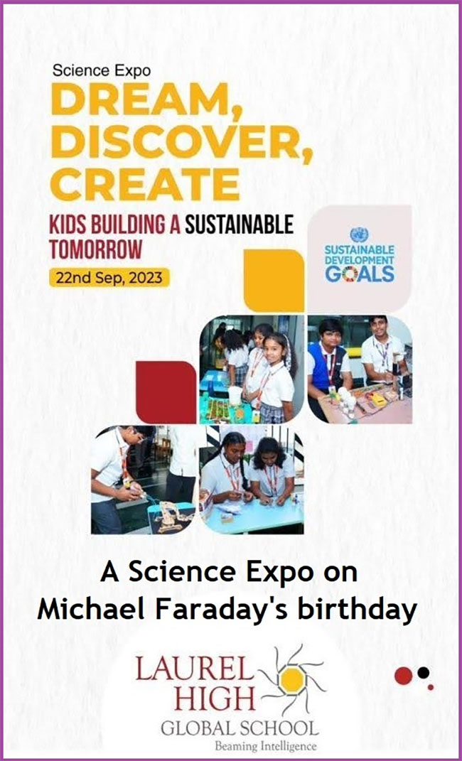 Dream Discover Create" A Science Expo on Michael Faraday's birthday 22nd September 2023 at Laurel High Global School Rajamahendravaram