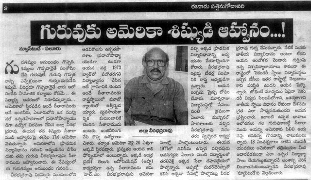 He concentrated in studies more to escape from the farm work , as otherwise he would have ended up in it, along with his four other brothers. He got state 3rd rank in 10th class in 1972 and passed with state 21st rank in Intermediate. He got State special merit scholship and passed B.E(Mech) from Andhra Univerity with 2nd rank.