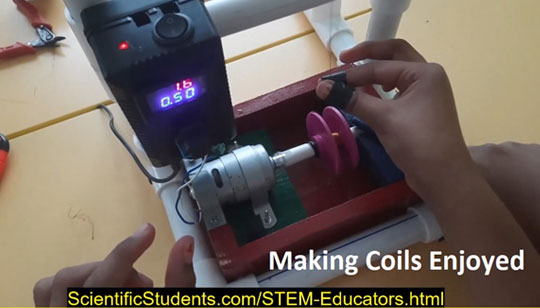 - To generate electricity in a fundamental way like making an electric coil and moving a magnet within it to produce the electricity. Connected concepts and calculation for this coil making process in a stem way. We named it as “Power in the Palm”
