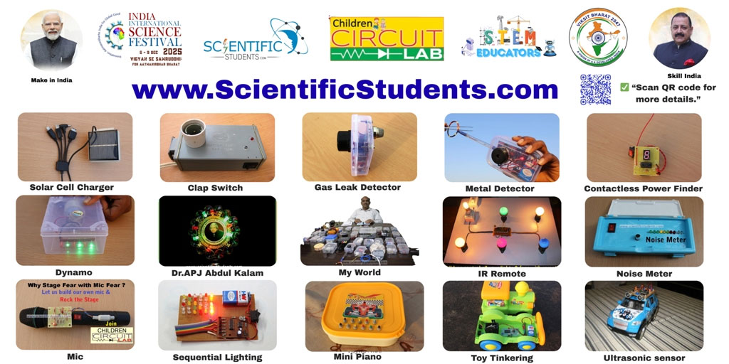 NOTE: Without proper knowledge of earthing and the risk of AC mains etc, NO child is allowed to work in connection with any electrical & electronic based projects. We are NOT RESPONSIBLE for such electrical hazardous power risks like shocks and injuries. We commit to train children in learning basics more scientifically and systematically from basic fundamentals.